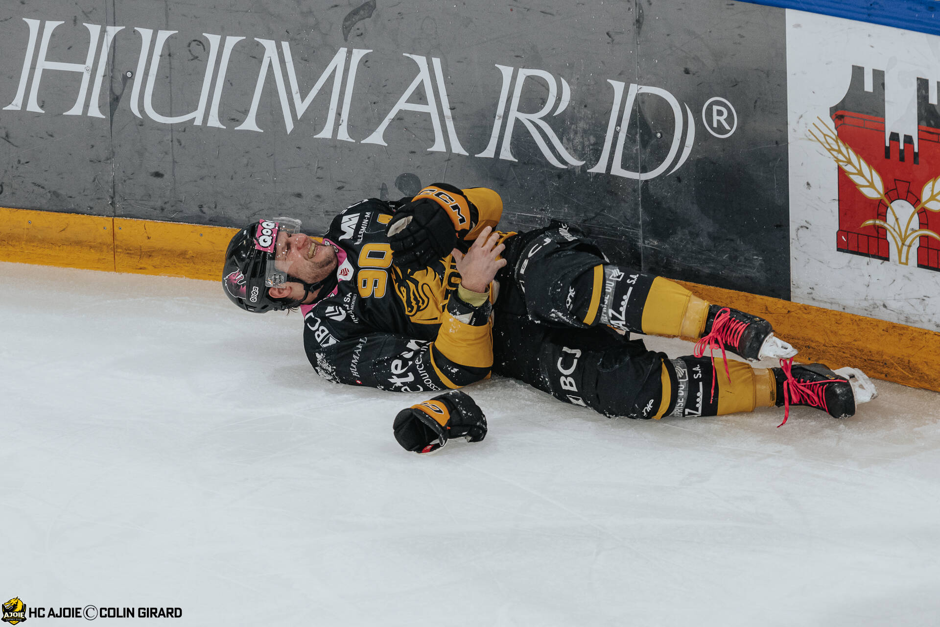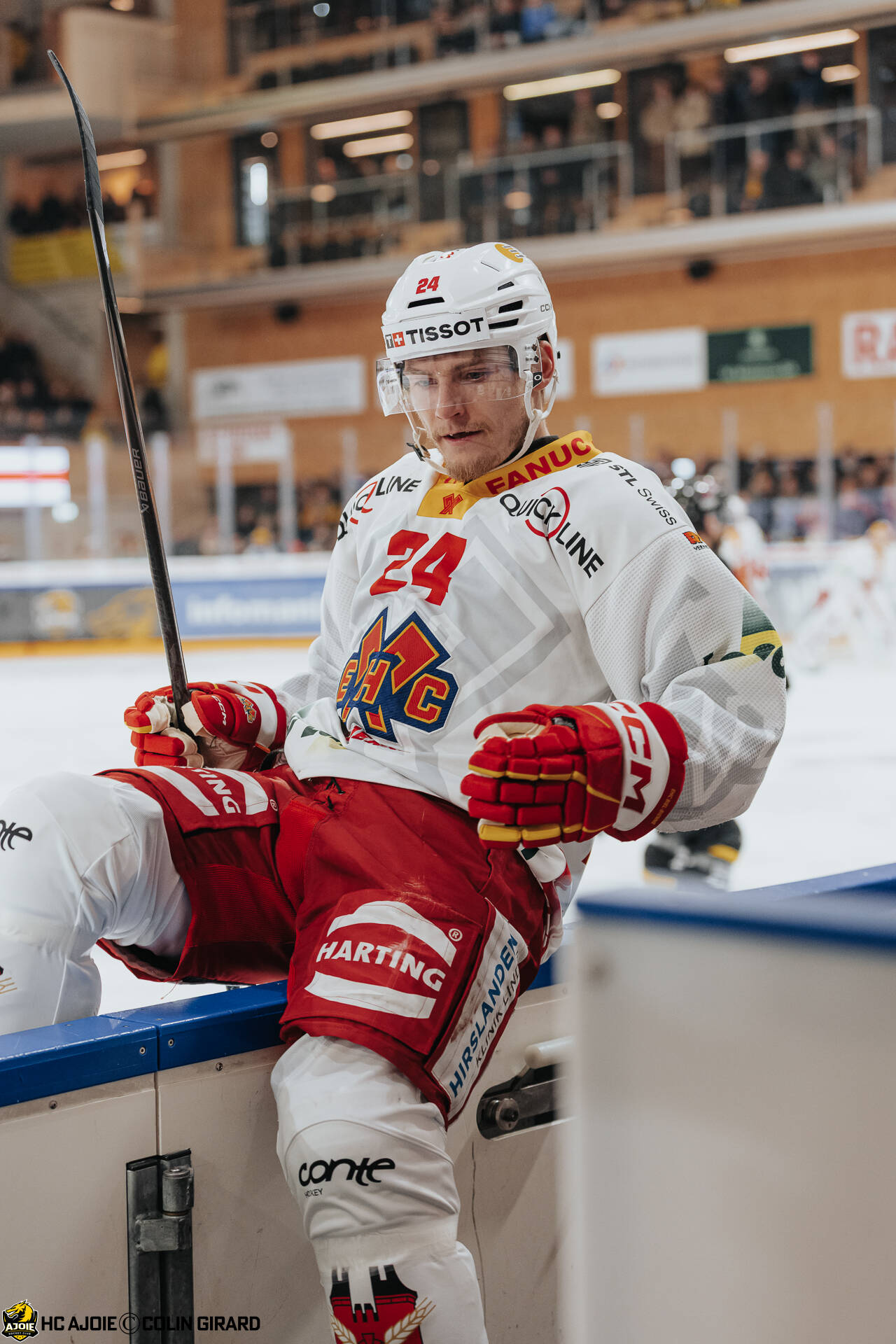 - 90 Fischer Jannik, C.G Photographie, Club National League, Colin Girard, HC Ajoie, HCA, HCA Vs EHCB, NL, National League, RAIFFEISEN ARENA, Saison 2025-26, Saison25-26, blessure, hockey