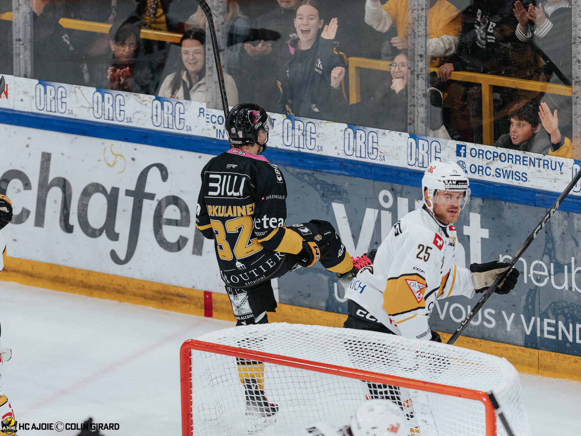 - 32 Turkulainen Jerry, But, C.G Photographie, Club National League, Colin Girard, HC Ajoie, HCA, NL, National League, RAIFFEISEN ARENA, Saison 2025-26, Saison25-26, célébration, hockey