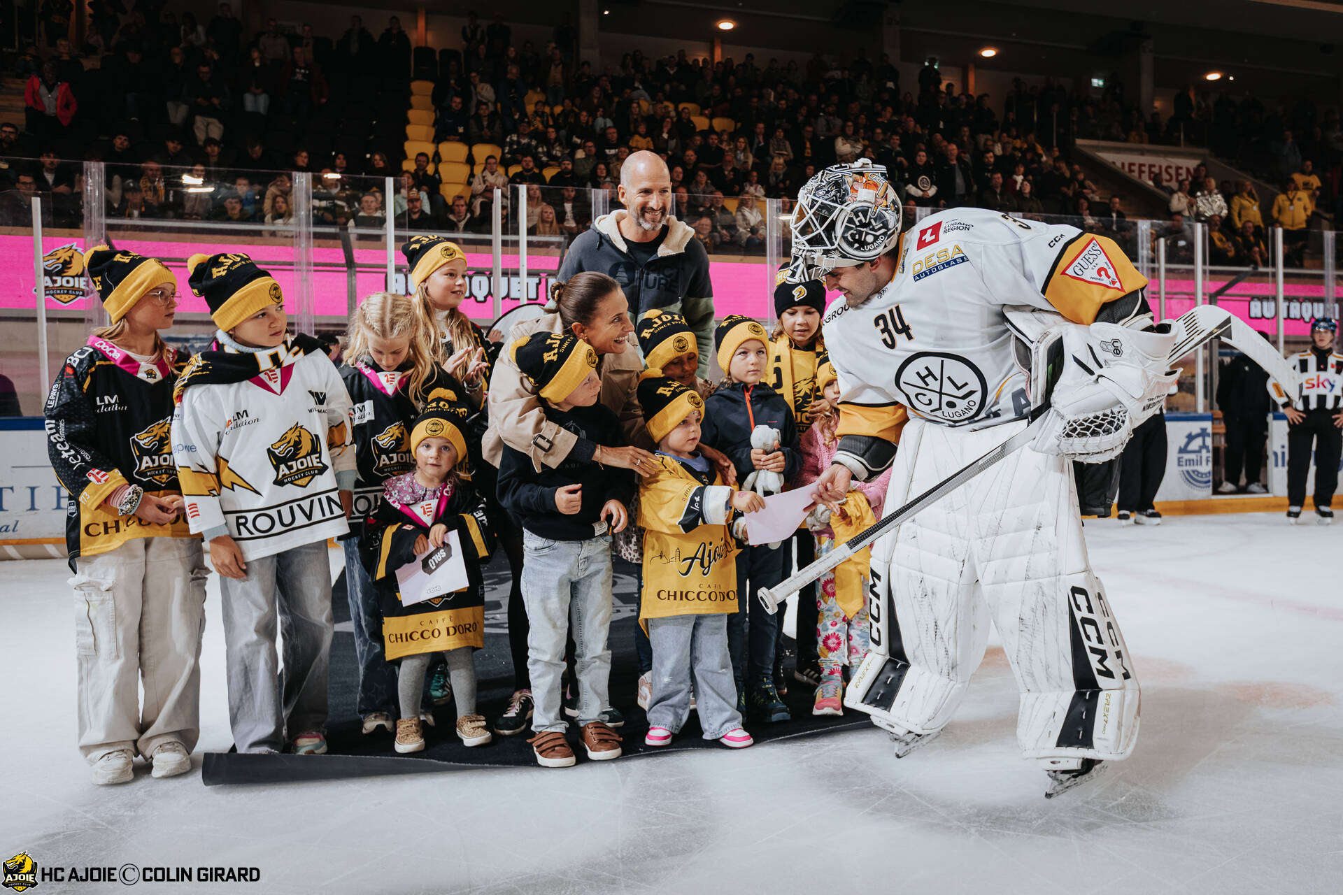 - C.G Photographie, Club National League, Colin Girard, Family Day, HC Ajoie, HCA, Loutre, NL, National League, RAIFFEISEN ARENA, Saison25-26, avant match, hockey, mascotte, séance d'autographe